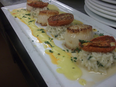 Seared Scallops, Truffled Corn Pudding, Herb Risotto